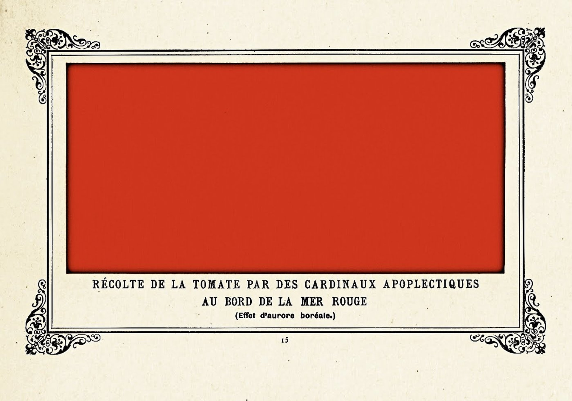 "Apoplectic Cardinals Harvesting Tomatoes on the Shore of the Red Sea (Study of the Aurora Borealis)", by Alphonse Allais.