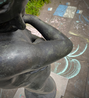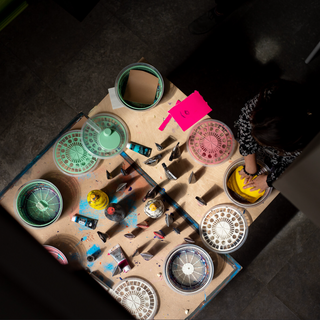 After the talk, I did paint explosions together with the guests, to create abstracts for them to take home. I also asked everyone to draw a flower with chalk, to celebrate the International Colour Day.